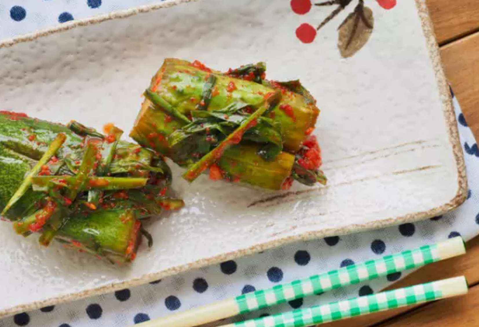 오이소박이는 껍질째 통째로 먹기 때문에 껍질에 많이 들어 있는 초록색 엽록소를 섭취한다는 것이다. 초록색 엽록소는 피를 맑게 한다는 사실을 독일의 과학자가 밝혀내면서 알려지게 되었다.”며 “서늘한 성질의 오이와 따뜻한 성질의 부추가 만나는 오이소박이는 궁합도 맞고 우리 몸에도 좋다.