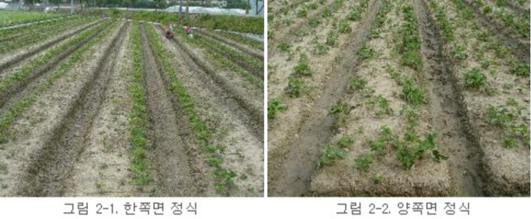 모주정식시기가 늦을 경우에도 양쪽으로 정식하여 자묘확보를 빨리하여 잡초와의 경합에서 유리하도록 한다.