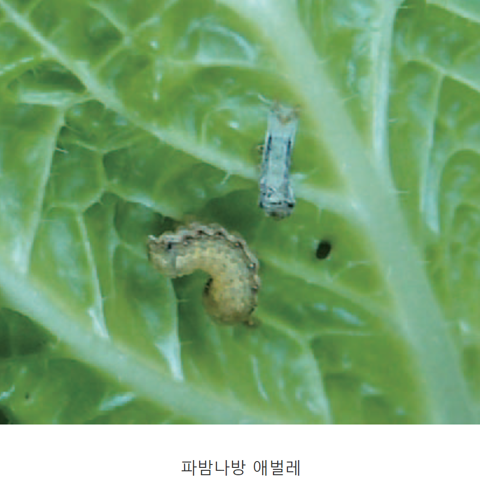 배추 잎 주변에서 애벌레 똥을 발견할 경우, 배추 중심부를 잘 살펴보면 애벌레가 보인다. 애벌레는 발견하는 대로 나무젓가락으로 잡아주고 전용 약제를 살포한다.