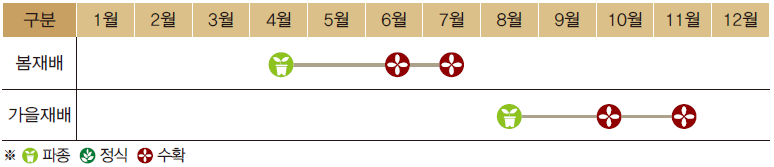 다만 다음해 종자용으로 쓸 종구생산을 목적으로 재배할 때는 심는(파종)시기를 2주일가량 늦춰 심는다.