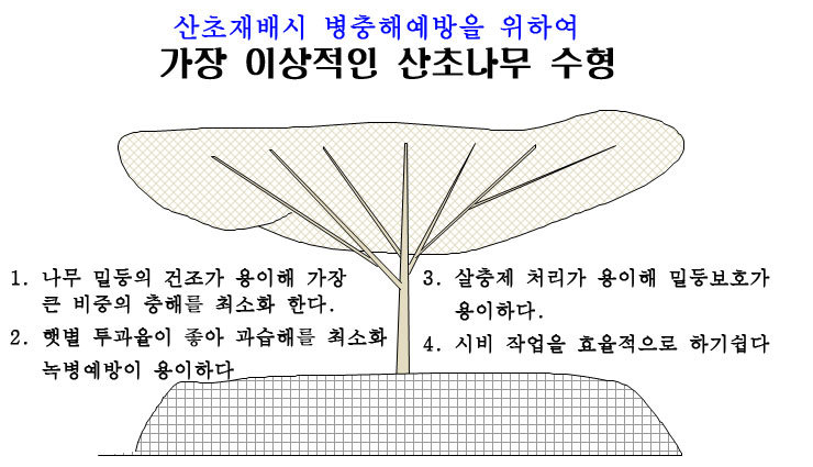 산초나무도 열매수확을 주 목적으로 재배하므로 일반 유실수와 마찬가지로 가지치기로 수형을 조절하여 우량품질의 열매를 많이 수확하는 것이 필수적일 것이다.