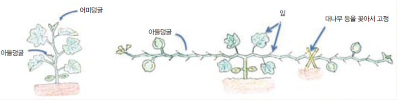 어미덩굴과 1~3개의 아들덩굴을 기르는 방법과