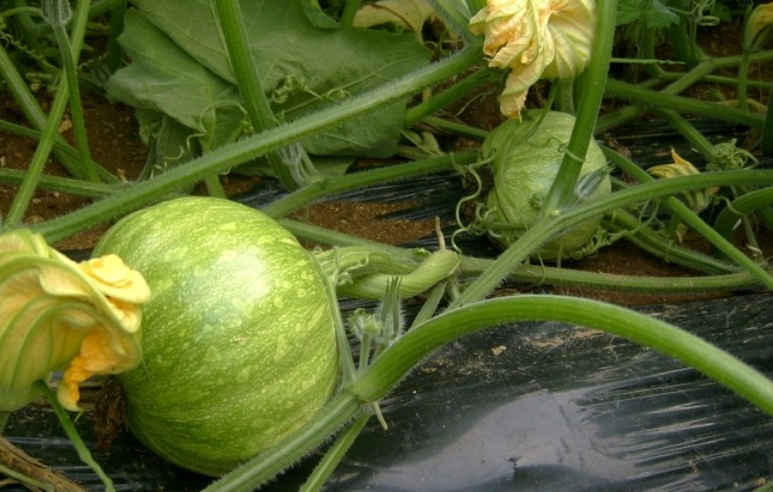 호박은 순지르기를 하고 줄기를 유인하여야 수량을 높일 수 있고, 호박 한그루에 숙과용 호박 2개를 달리게 하는 것이 유리하다.