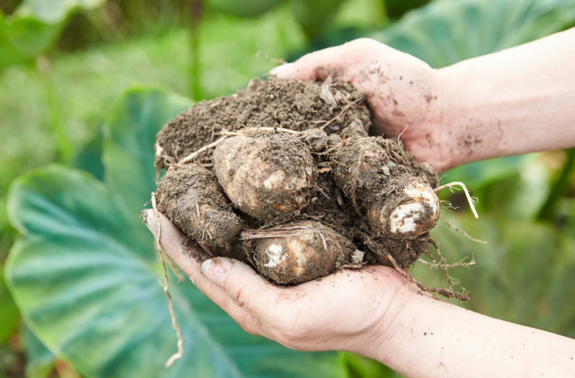 토란 즙에는 독성이 있어 손이나 팔에 묻지 않도록 하는 게 좋다.