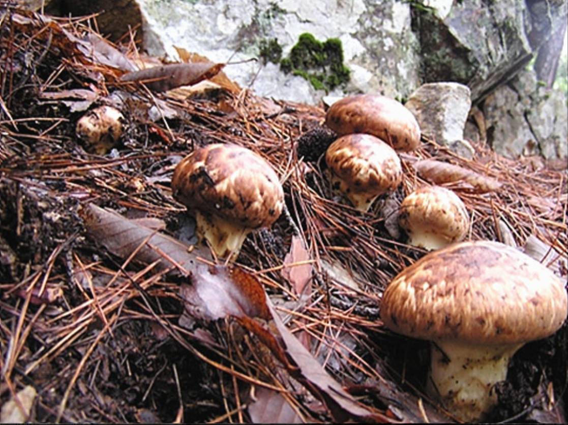 송이버섯은 소나무 뿌리에 기생하고 유기물이 적은 토양에서 자생한다.
