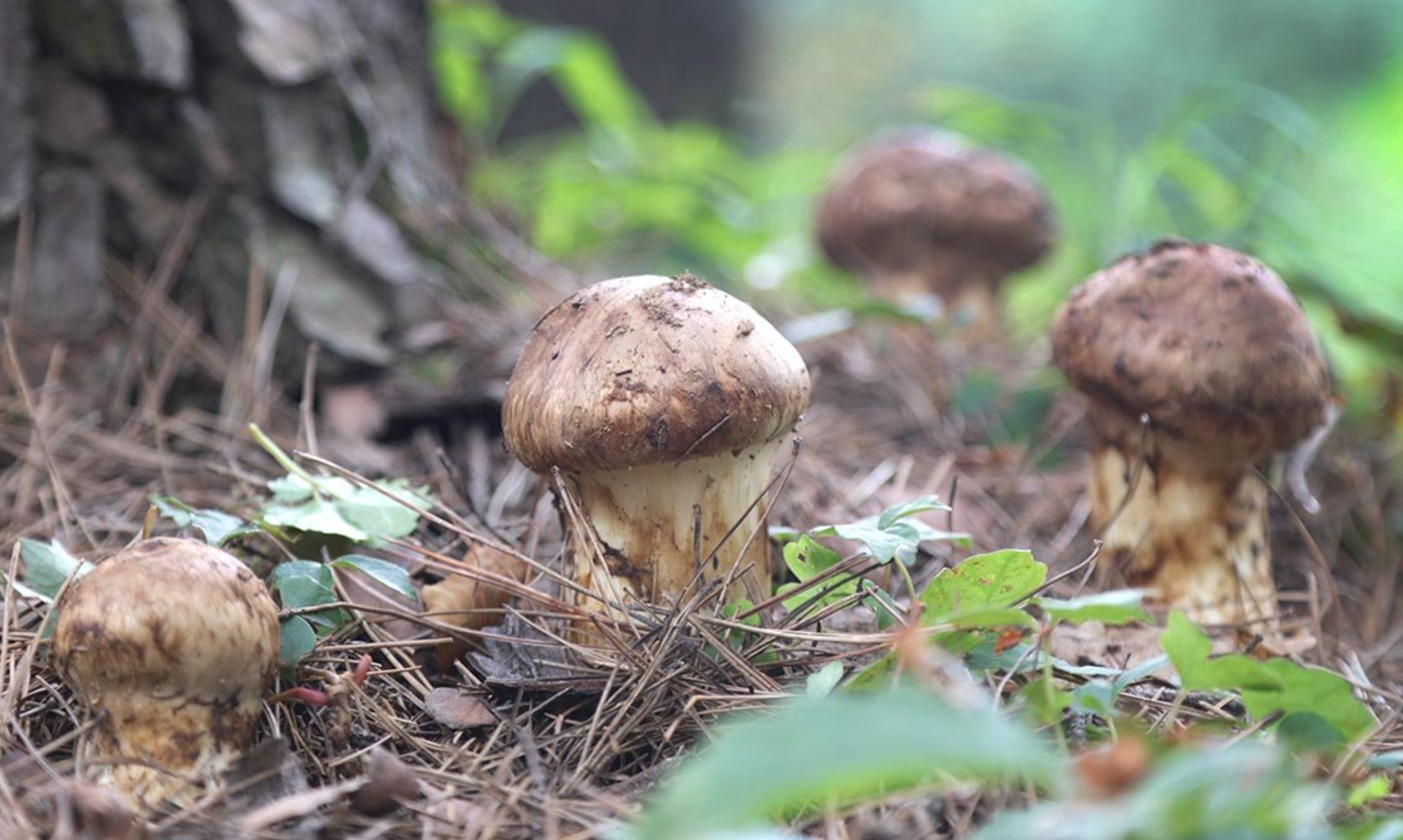 송이버섯은 소나무 뿌리에 기생하고 유기물이 적은 토양에서 자생한다.