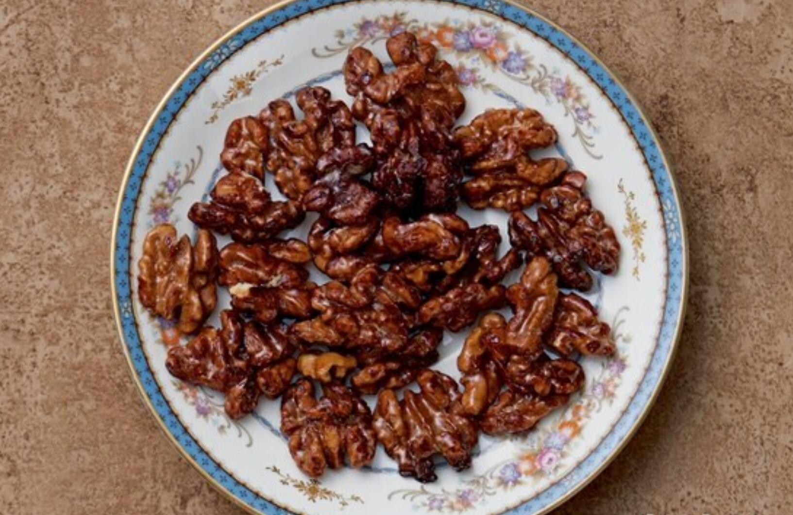 호두강정은 넉넉하게 만들어 놓으면 주전부리로 좋다. 호두는 약 3분 정도 끓는 물에 삶은 뒤 오븐에 구우면 떫은 맛이 나지 않고 고소하다.