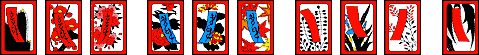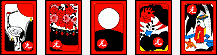 띠는 왼쪽과 같이 기본패의 모양에 띠가 그려져 있으며 모두 10장이다. 5장을 모으면 1점이고, 이후 추가로 1장씩 모을 때마다 1점씩 늘어난다.