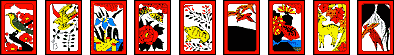 띠는 왼쪽과 같이 기본패의 모양에 띠가 그려져 있으며 모두 10장이다. 5장을 모으면 1점이고, 이후 추가로 1장씩 모을 때마다 1점씩 늘어난다.