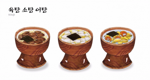 3열에는 탕 종류를 놓는데 2열과 마찬가지로 어동육서의 원칙을 따른다.