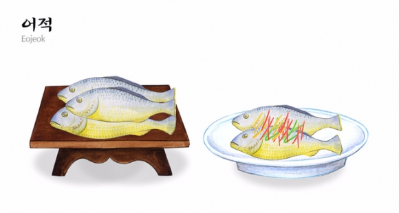 • 생선은 머리가 동쪽으로, 배가 신위 쪽으로 향하게 올린다.