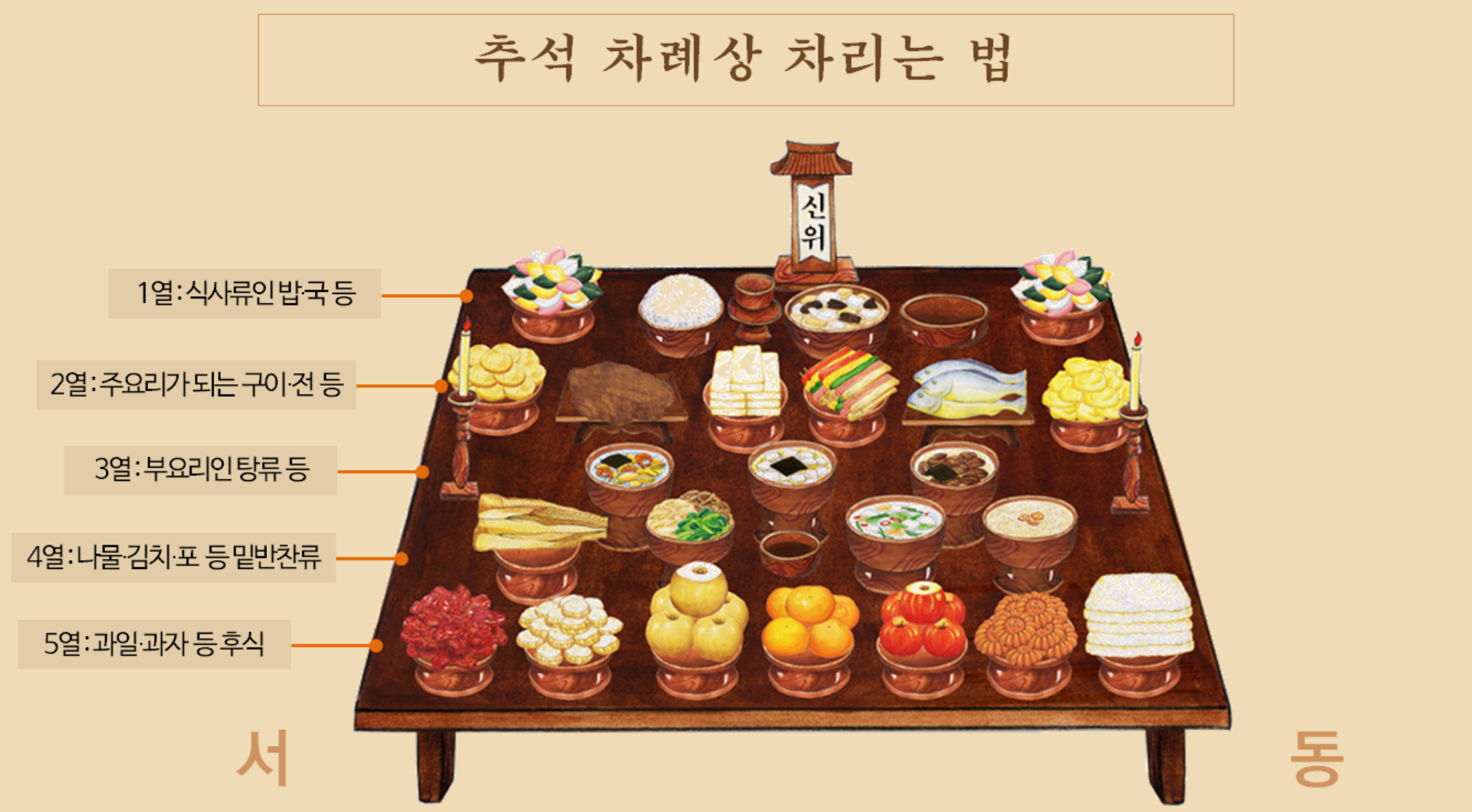 기본적인 추석 차례상 차리는 방법은 5열이다.