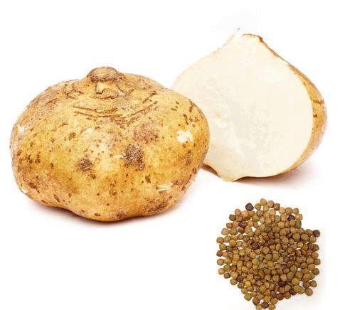 히카마(멕시코감자,얌빈) 에는 천연 인슐린이라 불리는 이눌린과 프락토 올리고당을 함유하고 있어 이 성분들이 혈당상승을 억제해 주므로 당뇨병에 효능이 있다