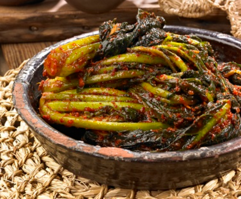 쪽파를 곁들인 갓김치 맛있게 담그는법도 있다. 여수 갓김치를 담그고 한 달의 시간이 지나면 먹을 수 있으며 웃소금을 넉넉하게 두르면 봄에서 여름까지도 여수돌산갓김치를 저장하고 먹을 수 있다. 진하고 매운 맛이 나는 갓김치 요리는 추위에 강한 채소이기에 늦가을부터 봄까지 제철을 이룬다.