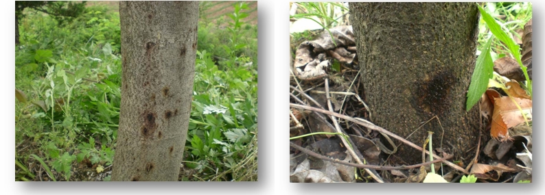 -나무의 밑둥부분에 발생시, 치명적이므로 밑둥에는 수성페인트를 칠하는 것을 권고한다.