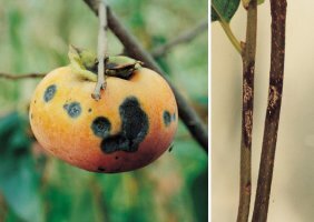 잎에는 처음엔 그을음상의 균사가 막을 형성하고 점차 잎전체가 검은 균사층으로 뒤덮인다. 주로 꼭지부분부터 발생. 피해를 입은 과일은 광택이 나빠지고 표면이 흑색으로 변하므로 상품가치가 떨어진다.