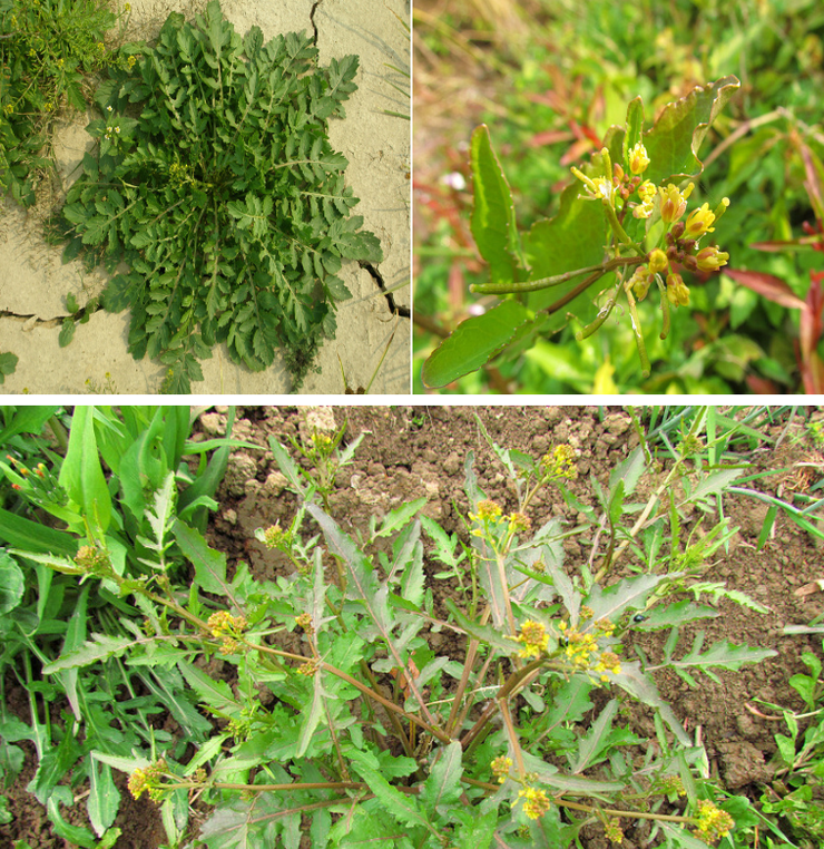 들의 약간 습한 곳에 자생하며 모양은 황새냉이와 비슷하지만