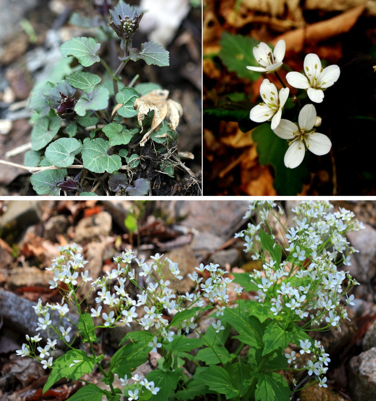 자생하며 이른 봄 눈 속에서도 피는데 산갓으로 불리며 전체에 털이 없고,