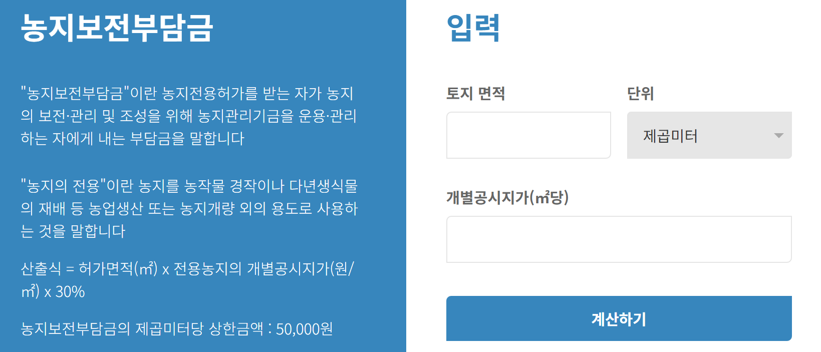 농지전용 부담금 계산기