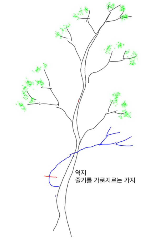 고사지(枯死枝): 이미 생장이 멈춰버려 죽은 가지