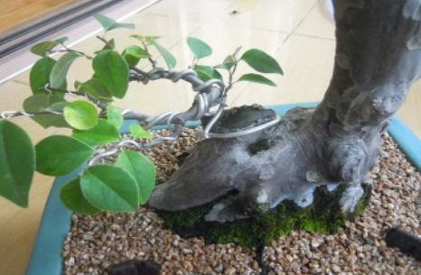 새가지가 15cm정도 일 때 철사감기. (새가지는 연해서 잘 부러진다. 1~2일 정도 물 주기를 삼가고 약간 시든 느낌이 있을 때 실시)