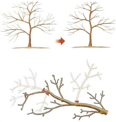 ④ 가을철 낙엽 후에는 각 가지를 10~15cm정도 남기고 쳐준다.