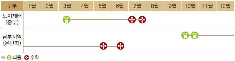 (주로 남부의 2모작 지대에서 많이 재배)