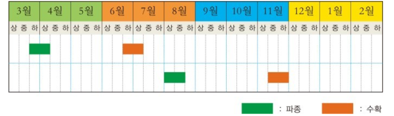 그리고 한창 여름이 되는 7월 초 이전에 수확시기를 잡고 수확을 끝내야 한다.