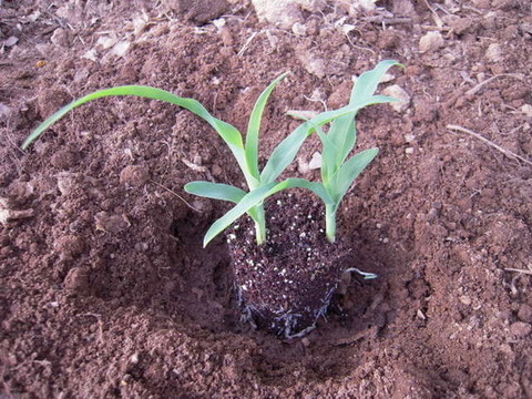 - 밭이나 비닐에 심을 간격을 맞춰서 구멍을 낸 후 구덩이에 물을 흠뻑 주고 모종을 한 개씩 넣은 후 심는다.