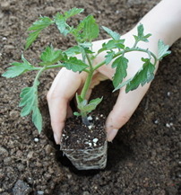 토마토 모종은 본엽이 7~9매로 전개되고 제1화방의 꽃이 10% 정도 개화된 것이 적당하며 모종의 뿌리내림은 정식 직후의 기온과 지온에 큰 영향을 받기 때문에 맑고 따뜻한 날을 택하여 토마토 모종심기를 해야한다.